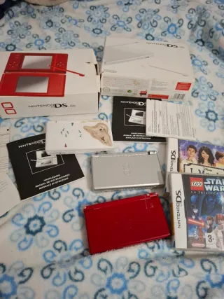 OJO LEER BIEN lote de 3 Consola ROTAS, DAÑAS. Nintendo DS Lite en colores rojo, plateado y blanco Incluye manuales y juegos. Se venden para repuestos o alguien que quiera repararlas, a la blanca le falta la batería, las otras dos si incluyen. No incluyen lápiz La roja y la gris tienen caja original en mal estado con manuales Incluye dos juegos completos con manual perfectamente funcionales. - Consola Nintendo DS Lite roja. - Consola Nintendo DS Lite plateada. - Juego LEGO Star Wars: La Trilogía Completa. - Manuales de instrucciones.