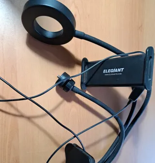 Aro de luz con alimentación USB con pinza para móvil y conector para cámara. En perfectas condiciones. Envío o entrega en mano en Burjassot, Valencia, Paterna o Torrent.