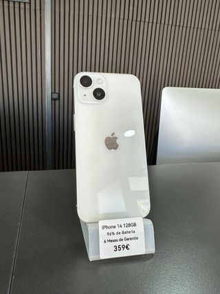 iPhone 14 128GB (Blanco) en muy buen estado y funcionando perfecto 📱✨ Móvil ideal si quieres un iPhone reciente, rápido y con batería todavía muy buena. ✅ 128GB de almacenamiento ✅ 96% de batería 🔋 ✅ Cámaras perfectas 📸 (fotos y vídeo TOP) ✅ Face ID / altavoces / micro / carga / botones: todo OK 👌 ✅ 6 meses de garantía 🛡️ ✅ Libre / listo para usar (se entrega restaurado) 📌 Estéticamente con alguna marca leve de uso normal (ver fotos), sin golpes importantes. 💶 Precio: 359€ 📩 Puedo enviar más fotos/vídeo y se puede probar en persona sin problema.