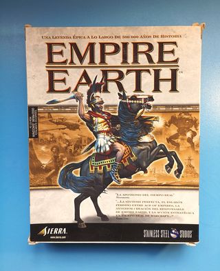 Videojuego de estrategia para PC, Empire Earth. Edición en español. - Compatible con Windows 98/Me/2000 - Desarrollado por Stainless Steel Studios y publicado por Sierra. - Inserto de cartón "casero". - Incluye CD y Manual.