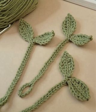 Un accesorio tejido a mano con forma de hojitas para mantener tus cables organizados y con un toque decorativo. - Pack de 3 hojitas. - Diseño de dos hojitas verdes. - Tejido a crochet.