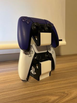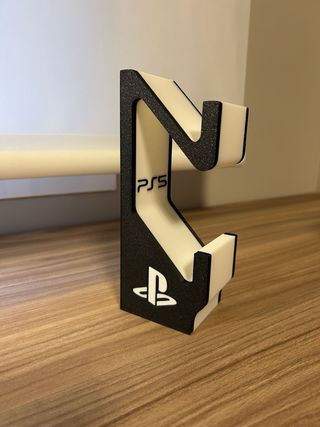 -Soporte para 2 mandos de PlayStation 5 de diseño moderno y personalizable. - Fabricado en impresión 3D. - Acabado bicolor blanco y negro. Pero puedes escoger los colores, tanto del interior, como los laterales y los logotipos por +3€ mas