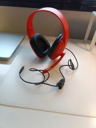 Cascos gamer en color rojo con micrófono incorporado. Para PS4 - Diseño ergonómico. - Cable de conexión. - Micrófono flexible. - Almuadillas cómodas para las orejas.