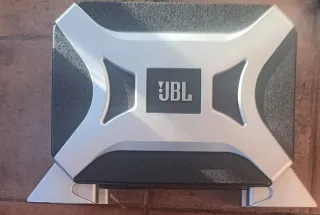 Subwoofer amplificado JBL BassPro II. - Diseño elegante en negro y plateado. - Compacto y potente.