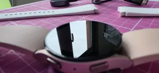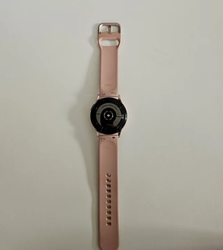 Reloj inteligente Samsung Galaxy Watch Active2 de 40mm en color rosa. En muy buen estado, solo tiene un pequeño rayón en la parte de atrás (no afecta al sensor). Se entrega con cargador (sin enchufe) y con juego de dos esferas de plástico para proteger la pantalla. - Diseño elegante y moderno. - Correa ajustable de silicona.