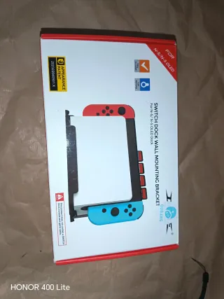 Lote de accesorios para Nintendo Switch. - Dos agarres para Joy-Con en color naranja. - Dos agarres para Joy-Con en color azul. - Funda de transporte negra. - Soporte de pared para la consola. - Dos fundas transparentes para Joy-Con. - Dos protectores de Joy-Con negros -Estuche para consola y juegos -Almacenador de juegos -Soporte de pared
