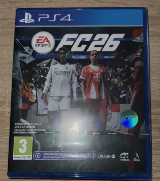 Videojuego de fútbol FC 26 para PlayStation 4. - Requiere descarga de contenido y transferencia. - Clasificación PEGI 3. - Actualización a versión para PS5 disponible. VENTA EN PERSONA