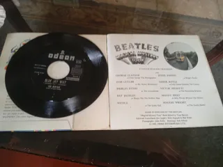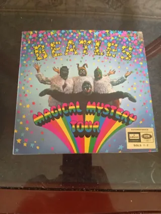 Vinilo del álbum Magical Mystery Tour de The Beatles. - Portada multicolor con estrellas. - Diseño psicodélico característico de la época.