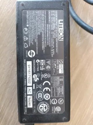 Adaptador de corriente Liteon modelo PA-1650-22. - Entrada: 100-240V~1.6A, 50-60Hz. - Salida: 19V 3.42A, 65W. - Fabricado en China.