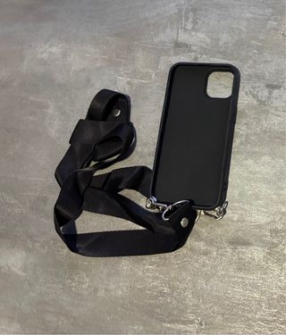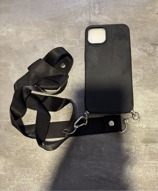 Funda protectora para iPhone 13 con una práctica correa. - Color negro. - Correa ajustable y desmontable.