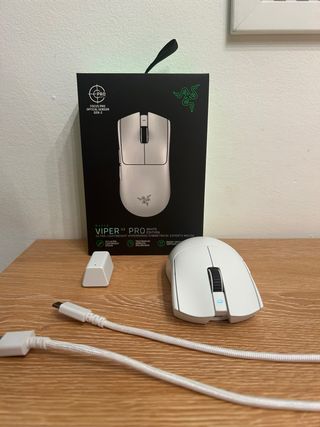 Ratón inalámbrico Razer Viper V3 Pro en edición blanca. Diseñado para gaming y uso profesional. Tiene apenas 1 mes con poco uso.