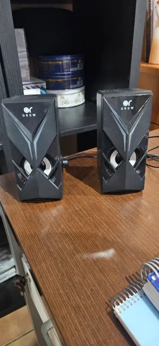 Altavoces de la marca GROW en color negro. Tienen un diseño moderno y compacto. - Diseño angular y llamativo. - Cono del altavoz visible.