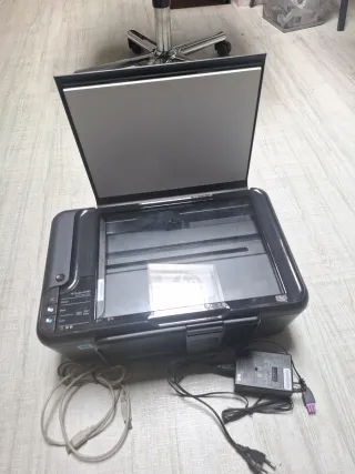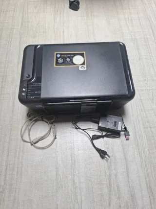 Impresora multifunción HP en color negro. Ideal para el hogar o la oficina. - Diseño compacto y moderno. - Incluye cables de conexión.