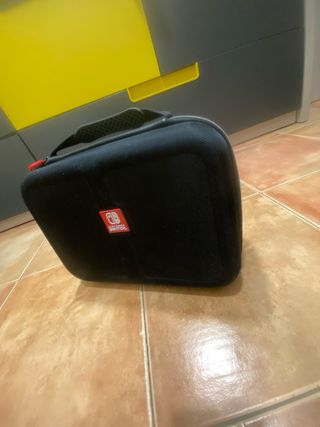 Maleta negra diseñada para transportar tu Nintendo Switch de forma segura y organizada. Su interior espacioso permite guardar la consola y accesorios. - Material exterior resistente. - Cierre de cremallera. - Logo de Nintendo Switch en la parte frontal.