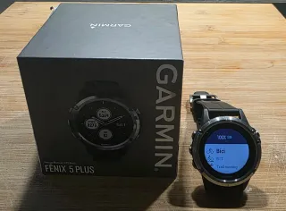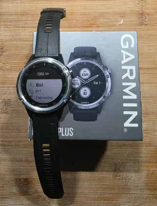 Reloj inteligente Garmin Fenix 5 con acabado plateado. Ideal para actividades deportivas y uso diario. - Pantalla circular. - Correa negra. - Incluye caja original.