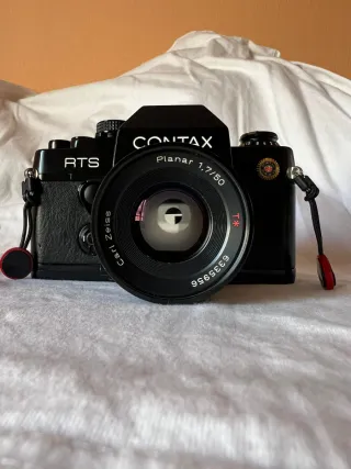 Contax RTS II + objetivo Contax Zeiss Planar 50mm f/1.7 + winder Real Time Winder-3 Vendo mi cámara querida, como nueva. Muy bien cuidada. Todo funciona perfectamente y está en buenísimo estado. El objetivo está muy limpio. Enfoque muy nítido.