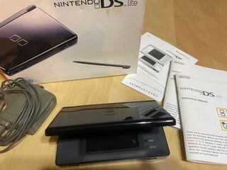 Consola Nintendo DS Lite en color Negro con CAJA y manuales. CON CARGADOR y Lapiz. REGALARÉ JUEGOS según conversación y trato. Funciona perfectamente todo. La pantalla SI se sostiene en todos las posiciones. Pantallas SIN pixeles muertos. sin afectaciones para experiencia de juego. La pantalla inferior una leve ralladura logicas de uso en el tiempo . CARCASA exterior en perfectas condiciones. PUEDES comprarme juegos si quieres. Se ven en una foto. Y según como te podria regalar alguno. Ya se vería segun conversacion. FELIZ AÑO 🥂