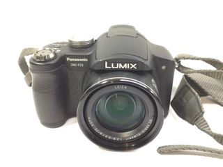 Cámara digital Panasonic Lumix DMC-FZ10 en color negro. Panasonic Lumix DMC-FZ10 en buen estado y funcionando correctamente. Cámara bridge con objetivo Leica DC Vario-Elmarit, zoom óptico 12x (35–420 mm aprox.), apertura constante f/2.8, estabilizador óptico y controles manuales, ideal para aprender fotografía o como cámara todo en uno. Incluye batería y tapa del objetivo.