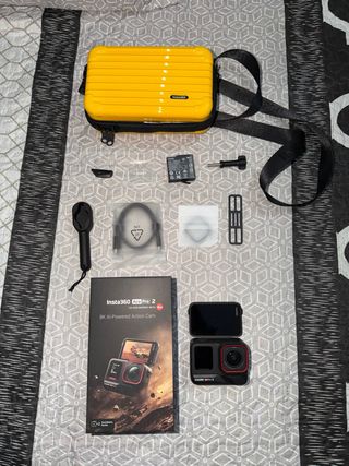 Se vende cámara Insta360 X3 junto con accesorios,en un estado impecable. - Incluye dos carcasas de buceo.(Una nueva a estrenar con protector de silicona+ otra usada en perfectas condiciones con una pequeña marca que no impide su uso.) - Se incluye palo selfie invisible de 114cm. - Viene con bolsa de transporte,funda protectora de la cámara para evitar que se rallen las lentes,y protector de silicona para lentes cuando se está usando y transportando. -Conservo todas las cajas originales.
