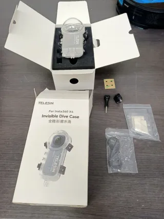 Protege tu cámara Insta360 X3 con esta carcasa de buceo. Es la original. Se vende por no usar. Comprada en Agosto de 2025. Se puede sumergir y es invisible. Nueva prácticamente. En su caja original y con todo sus accesorios.