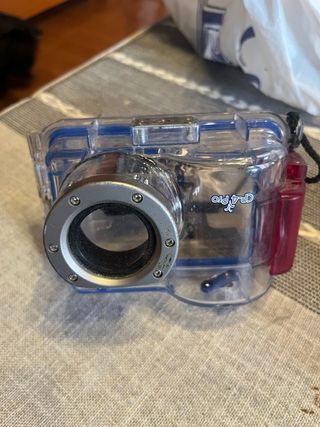 Funda protectora para cámaras, ideal para actividades acuáticas como el buceo. Permite proteger tu equipo de la humedad y el agua. Sumergible totalmente. Jamás usada, esta nueva. - Diseño transparente. - Cierre seguro. - Correa de sujeción.