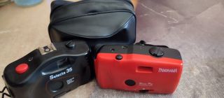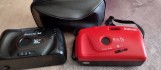 Se venden dos cámaras de fotos antiguas en buen estado. Ideales para coleccionistas o amantes de la fotografía analógica. - Una cámara Panorama roja, con lente panorámica. - Una cámara Selecta 35 negra, con lente de 35mm. para recoger en alcorcon