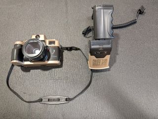Cuerpo de cámara SLR de 35 mm Minolta Dynax 700si con manual original. Modelo de gama alta que permite un uso totalmente automático con múltiples modos para principiantes y modo manual para expertos. Dispone de autofoco, detección automática de ISO, flash con infrarrojos y reducción de ojos rojos, activación automática con el ojo, alta velocidad de obturacion para fotos en movimiento y muchas otras caracteristicas avanzadas. Admite objetivos Minolta y Sony (serie alfa) Se incluye Flash Mecablitz SCA300 autofoco, infrarrojos, orientable y con ajuste de exposicion