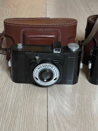 Lote de dos cámaras analógicas Fex Mosquito I y II, fabricadas sobre los años 50 en Francia. En muy buen estado estético y de funcionamiento. Ambas incluyen una bobina. Utilizan película 620. Dos aperturas y velocidades. Una con zapata. Incluye dos fundas de cuero en muy buen estado, una de ellas tiene el asa rota. cámara, cámaras, analógicas, bobina, film, antigua, antiguas, antigüedad, coleccion, coleccionismo, coleccionista, pack, lote, oferta, vintage, retro, pelicula, fotografia, fotos, foto, fotografo, original, originales, clásica, clásicas, fotógrafos, analógica, funda, estuche, cuero, piel, compacta, compactas