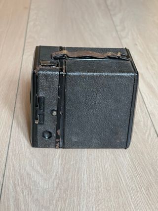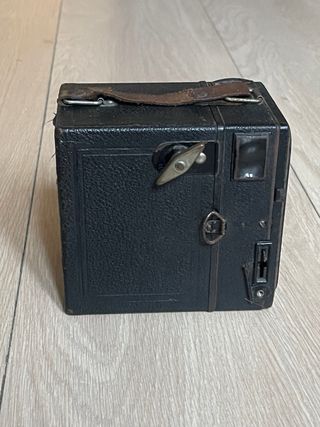 Cámara de caja fabricada alrededor de 1930. Utiliza película 120. Tiene tres aperturas seleccionables en el frontal. Dos velocidades, instantánea y B, y posición de bloqueo. En muy buen estado estético, funcional en todas las velocidades y aperturas. Los visores están bien, pero no del todo limpios. cámara, cámaras, analógicas, bobina, film, antigua, antiguas, antigüedad, coleccion, coleccionismo, coleccionista, pack, lote, oferta, vintage, retro, pelicula, fotografia, fotos, foto, fotografo, profesional, original, originales, clásica, clásicas, fotógrafos, analógica, funda, estuche, cuero, piel