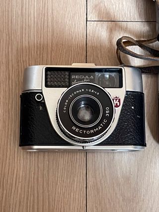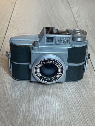 Cámara analógica compacta fabricada en 1965 en Alemania. Utiliza cartuchos rapid con película de 35mm (no incluidos). Lente de tres elementos Color-Agnar. Enfoque por zonas. Velocidades automáticas controladas por el fotómetro. En buen estado estético, con una grieta en la zona del visor. No incluye los cartuchos, pero el avance y el disparo funcionan con ellos puestos. cámara, cámaras, analógicas, bobina, film, antigua, antiguas, antigüedad, coleccion, coleccionismo, coleccionista, pack, lote, oferta, vintage, retro, pelicula, fotografia, fotos, foto, fotografo, profesional, original, originales, clásica, clásicas, compactas