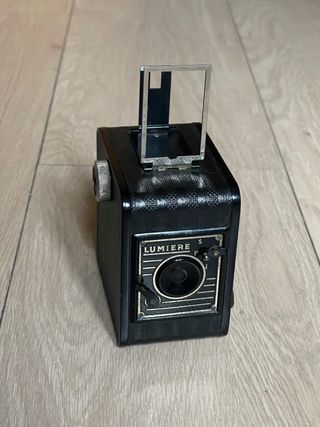 Cámara de caja fabricada en Francia en la década de los 30. Utiliza película 120. Lente de menisco simple. Diafragma fijo. Velocidades instantánea y B. Dos visores. En muy buen estado estético, funcional y con funda de cuero. Visores bastante limpios. cámara, cámaras, analógicas, bobina, film, antigua, antiguas, antigüedad, coleccion, coleccionismo, coleccionista, pack, lote, oferta, vintage, retro, pelicula, fotografia, fotos, foto, fotografo, profesional, original, originales, clásica, clásicas, fotógrafos, analógica, funda, estuche, cuero, piel