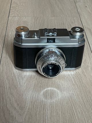 Cámara analógica compacta fabricada en Alemania en los años 60. Tiene un fotómetro de selenio integrado (funciona). Utiliza película de 35mm. Lente Color isconar de 3 elementos. En buen estado estético. El obturador se atasca en algunos disparos. cámara, cámaras, analógicas, bobina, film, antigua, antiguas, antigüedad, coleccion, coleccionismo, coleccionista, pack, lote, oferta, vintage, retro, pelicula, fotografia, fotos, foto, fotografo, profesional, original, originales, clásica, clásicas, fotógrafos, analógica, funda, estuche, cuero, piel, compacta, compactas