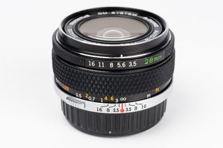 El objetivo a la venta es un gran angular de 28 mm para cámaras analógicas Olympus de la serie OM. Ha sido chequeado y comprobado que funciona correctamente. Hay algunas marcas de limpieza en la lente frontal ( ver fotos). Los mecanismos son suaves y fluidos Incluye tapas.