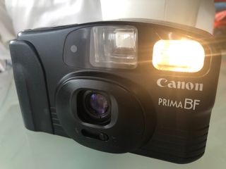Cámara fotos compacta Canon Prima BF , analógica, motorizada , automática, con lente 35mm 1:4.5, autofocus, dos modos temporizador en buen estado de funcionamiento