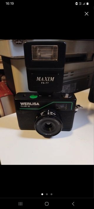 cámara fotos analógica werlisa club 35, y flash maxim fx 77, el flaix funciona con 2 pilas AA