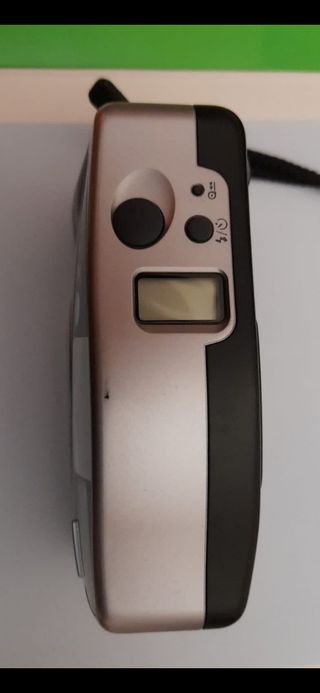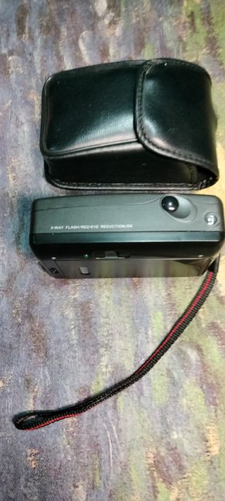 Cámara de fotos de 35mm con flash automático integrado y autofoco; fabricada en Japón, años 90. No se usa desde el 2000. Ha perdido la tapa de plástico transparente que cubría el flash el visor y no garantizo que funcione. La parte de las pilas está limpia pero para probarla tendría que comprar un carrete, pagar revelado, etc. o llevarla a que la revise un entendido y prefiero venderla a quien quiera encargarse. o le interese como objeto de colección. Las he visto de 40 a 110€, la dejo a 15€ para quien la quiera poner a punto. La entrego con la funda que se ve en las fotos, funciona con 2 pilas AA (no incluidas).