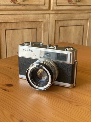 Camara analogica Yashica Hi-Matic 7 con objectivo Rokkor-PF 1:1.8 54mm. He comprobado como muy bien he podido casi todos los mecanismos y funcionan (la unica pega es que la manibela de recarga no tiene retroceso, pero se puede volver a colocar normal) (esto se puede arreglar facilmente engrasando el mecanismo). No la he disparado. Para mas información, fotos o videos sobre la camara no dudes en preguntarme. Hago precio por las dos Minolta juntas.