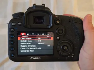 Cámara réflex digital Canon EOS 7D Mark II en perfecto estado, con protector de pantalla. Desconozco los disparos que tiene, el programa no me dejaba verlos. Incluyo 3 Baterías (Dos de ellas la camara las reconoce como NO ORIGINALES, pero le das a OK y la camara funciona normal) También incluyo un EF-S 10-22mm f/3.5-4.5 original de canon, gran calidad en sus lentes, muy querido y bueno para foto de paisaje, valorado en 400€ nuevo. También incluyo Tarjeta SD de 32gb - Cuerpo de cámara. - Lente EF-S 10-22mm f/3.5-4.5 USM. - Tres Baterías - SD 32gb