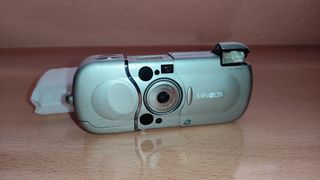Cámara de fotos Minolta. Objetivo: Olympus Zoom 22'5/45mm. Película: APS, con tres posiciones de foto C (10×15) H (13×18) P (10×25). Autofocus, con flash on, flash off, flash con reducción de ojos rojos, flash foto nocturna, autodisparador, sensibilidad por código DX, fechador, avance y rebobinado motorizado. Usa una pila CR2. Funciona perfectamente. Se realizan envíos. Más productos en mí página.