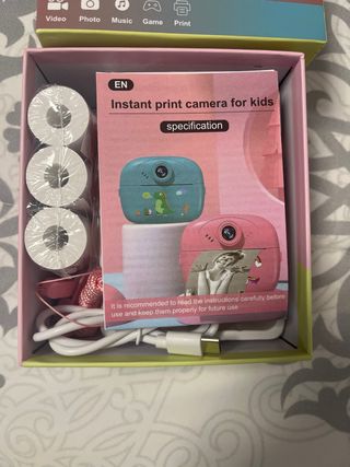 Cámara digital infantil instantanea , ideal para los más pequeños. Permite capturar momentos especiales y explorar su creatividad. Las fotos salen en blanco y negro, trae 3 recambios. no se ha usado nunca. vino por error el color. - Diseño compacto y divertido. - Pantalla para ver las fotos. - Funciones de video, foto, música y juego.
