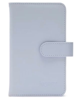 Tengo 3. 1x6€ 3x 15€ Álbum de estilo cartera para guardar tus fotos Instax Mini. Tiene un cierre de botón a presión para mantener todo seguro. - Capacidad para 108 fotografías. - Color azul claro grisaceo - Diseño elegante y compacto.