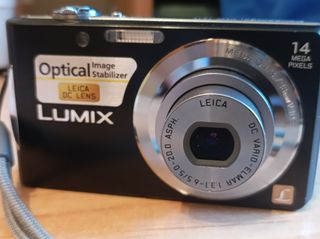 Cámara digital Panasonic Lumix con zoom óptico 10x funcionando perfectamente, es muy buena camara me acompaño a algunos viajes. esta en muy buen estado estetico y bien cuidado como se puede ver en las fotos. Lo entrego con su batería y cable que sirve para cargar la cámara y pasar archivos. - Zoom óptico 10x. - Certificación WiFi. - Incluye bateria. - No incluyo SD pero no tiene problemas al leerlo. - Flash funcionando sin problemas venta en persona solo en Albacete