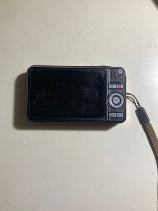 • Resolución: 8.1 megapíxeles • Lente: Zoom óptico 3x, zoom digital 4x • Pantalla: LCD de 2.6 pulgadas • Estabilización de imagen: No especificada • Detección de rostros: Sí • Modos de escena: Variados, incluyendo Paisaje, Retrato y Escena Nocturna • Grabación de vídeo: VGA (640x480) con sonido • Almacenamiento: Tarjetas de memoria SD/SDHC • Diseño: Delgado y compacto No incluye cargador, ni bateria, ni tarjeta SD La cámara funciona pero tiene la pantalla rajada por lo que no se enciende. Puedes hacer fotos pero no las puedes ver hasta que las veas en otro dispositivo. Si no para piezas