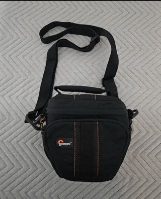 Bolso para guardar la cámara de fotos en color negro con asa y opción bandolera, sin estrenar. - Modelo: Adventura TLZ 15 - Diseño compacto y ligero. - Correa para el hombro ajustable. - Compartimento principal con cierre. - Bolsillo frontal con cierre.