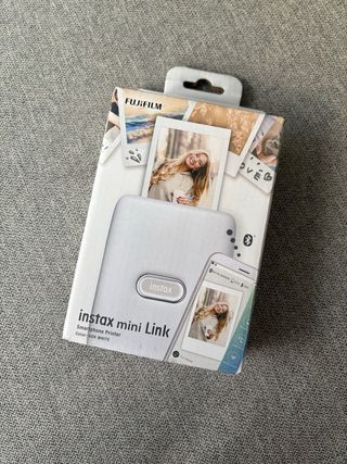Impresora de fotos Instax Mini Link de Fujifilm. Compacta y fácil de usar para imprimir tus recuerdos. Solo utilizada un cartucho - Diseño elegante en color blanco. - Conexión vía smartphone.