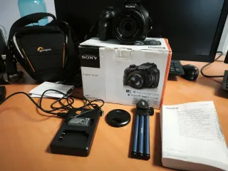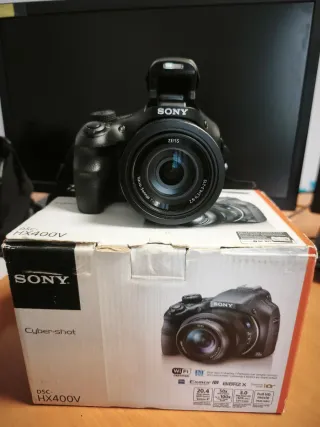 Potente cámara de fotos digital Sony Cyber-shot DSC-HX400V en color negro. Tiene muchísimas funciones y hace las fotos magníficas. En estado perfecto de funcionamiento y estético. Prácticamente nueva, no tiene apenas uso. Súper zoom 50x.pantalla LCD abatible,WiFi,GPS,NFC.... Además,te incluyo accesorios: 1-Asa de hombro 2-Protector redondo de lente 3-Cargador de batería doble 4-tres baterías ión litio 5-cable USB 6-un trípode Digipro 7-Funda acolchada para su transporte. 8-libro de instrucciones 9-su caja original ****Todo cómo nuevo**** Te lo envío rápido y súper protegido