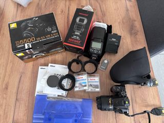 Se vende kit completo de cámara Nikon D5500 en perfecto estado. Incluye todo lo necesario para empezar a fotografiar. - Cuerpo de cámara Nikon D5500. - Objetivo Nikkor DX 18-55mm f/3.5-5.6G VR. - Flash externo Neewer NW 561. - Funda impermeable. - Funda protectora para cámara. - Mando a distancia. - Parasoles y tapas de objetivo. - Caja original. Sensor APS-C de 24,2 MP – excelente calidad de imagen. Pantalla abatible y táctil, ideal para vídeo, selfies y ángulos difíciles. Grabación de vídeo Full HD. WiFi integrado para transferir fotos al móvil fácilmente. Cámara ligera y compacta, muy cómoda de usar. Buen rendimiento