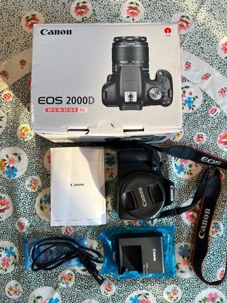 Canon EOS 2000D + Kit Completo (Estado de Reestreno) ¡Oportunidad! Vendo Canon EOS 2000D con solo 2 meses de uso ocasional. Está impecable (10/10), sin marcas ni desgaste. Ideal para iniciarse en fotografía. El pack incluye: Cuerpo Canon 2000D (24.1 MP + Wi-Fi) Objetivo EF-S 18-55mm Cargador y batería original Mochila acolchada y manuales Equipo muy cuidado, guardado siempre en funda. Si necesitas más fotos o detalles, pídeme las que quieras sin compromiso. Se puede ver y probar.