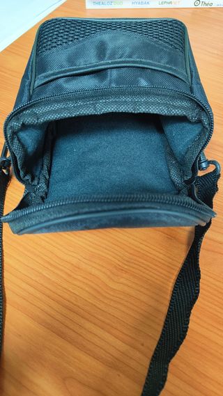 Vendo funda bolsa para guardar y transportar las cámaras fotográficas. Parte exterior reforzada, con un bolsillo y asa para cinturón. Cinta para llevar colgada. Parte interior forrada de tejido suave y acolchado. Para cámaras de fotos digitales compactas, digitales híbridas o para cuerpos Reflex. Medidas Interiores 12 cm largo x 6 cm ancho x 13 cm de alto.