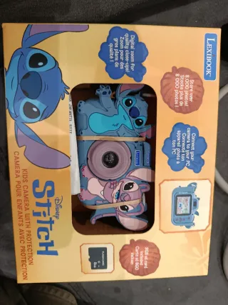 Cámara digital infantil de Stitch, ideal para los más pequeños. Incluye protección para mayor durabilidad. - Zoom digital para primeros planos de calidad. - Permite almacenar más de 8.000 fotos. - Conexión a PC para transferir imágenes. - Incluye tarjeta SD de 8GB. La cámara está nueva sin usar con ticket de compra y garantía de 2 años. No la pudimos devolver pq la niña le quitó el precinto. En el precio se incluyen los gastos de envío.